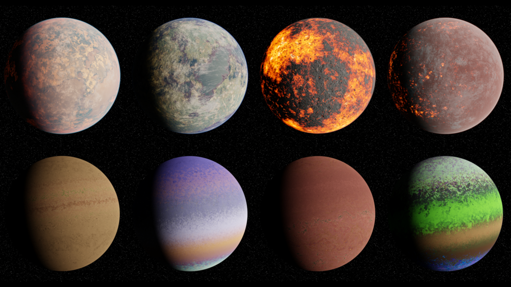 Version 1.0.2 (released 10/13/24): Fixed an issue with the random generator giving out an error when generating volcanic planets in some cases because of the removal of the Musgrave Texture node in blender 4.1.